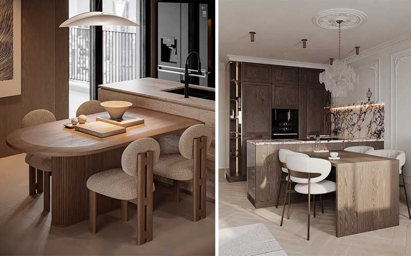 Por su parte, en casas y pisos de grandes dimensiones, la isla continúa siendo una de las piezas más deseadas en la integración de cocinas al salón, aunque hoy su función va mucho más allá del apoyo para cocinar.